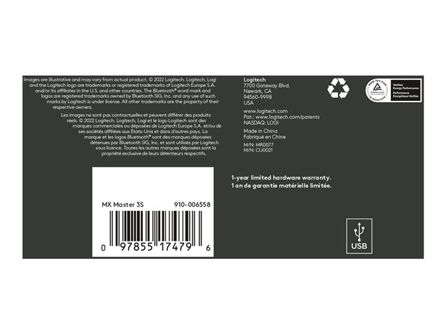 | Ominaisuudet | Peukalopyörä, eletoiminto, ladattava akku, Quiet Clicks -tekniikka, MagSpeed-vieritys, muokattava DPI, Logitech Darkfield Laser Tracking, Easy-Switch -tekniikka, peukalotuki |