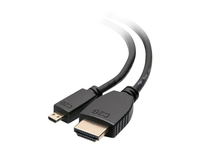 C2G 6ft HDMI to Micro HDMI Cable with Ethernet - High Speed HDMI Cable - HDMI-kaapeli Ethernetillä - 19 pin micro HDMI Type D uros to HDMI uros - 1.83 m - suojattu - musta 50615