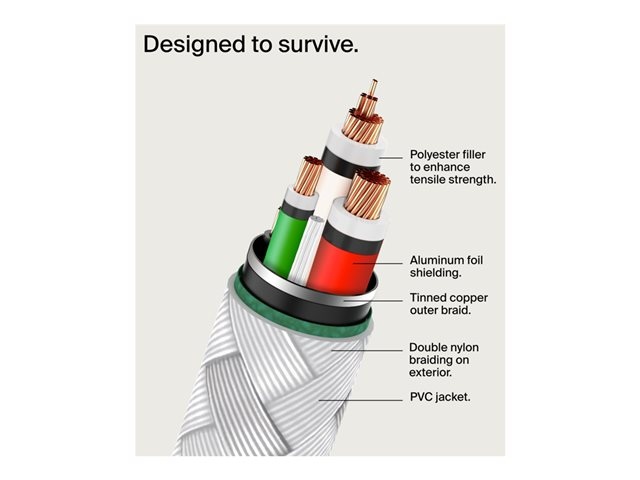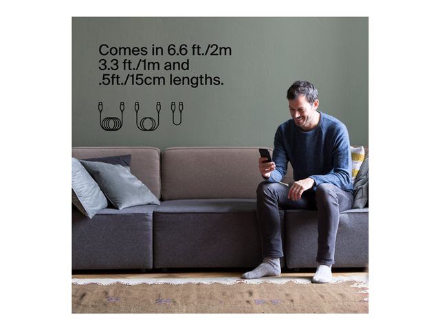 Belkin BoostCharge - USB-kaapeli - 24 pin USB-C (uros) to 24 pin USB-C (uros) - USB 2.0 - 3 A - 1 m - USB Power Delivery (60W) - valkoinen (pakkaus sisältää 2)