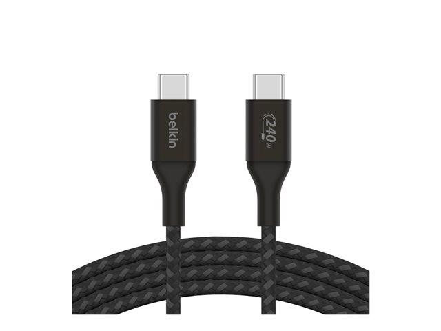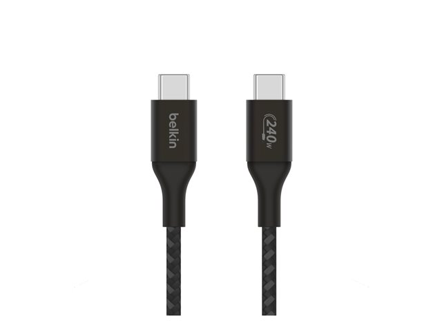 Belkin BoostCharge - USB-kaapeli - 24 pin USB-C (uros) to 24 pin USB-C (uros) - USB 2.0 - 2 m - virransyötön tuki jopa 240 W:n tehoon asti - musta