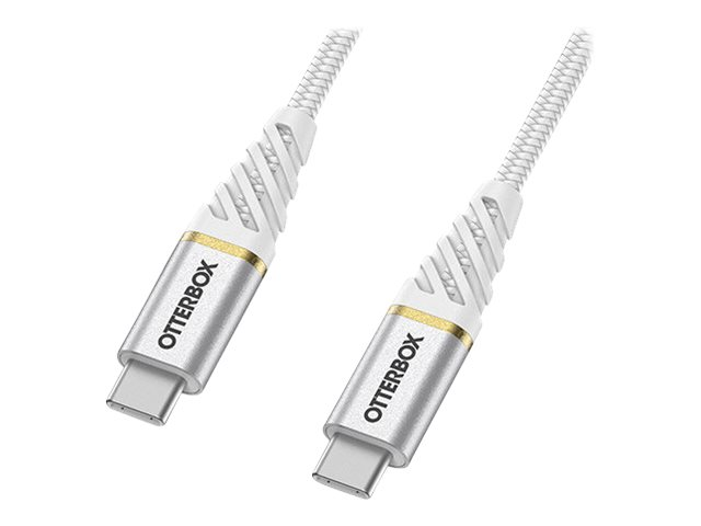 OtterBox Premium - USB-kaapeli - 24 pin USB-C (uros) to 24 pin USB-C (uros) - USB 2.0 - 3 A - 2 m - tuki virransyötölle - pilvitaivaan valkoinen