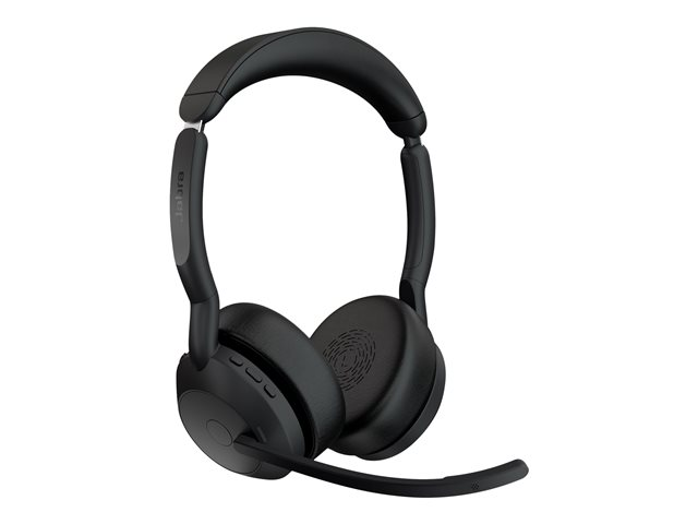 Jabra Evolve2 55 UC Stereo - Kuulokkeet + mikrofoni - korvien päällä - Bluetooth - langaton - aktiivinen melunpoisto - USB-C, USB-A - musta - sekä latausalusta - Zoom-sertifioitu, sertifioitu Microsoft Teamsille, Cisco Webex Certified, optimoitu UC:lle, Alcatel-Lucent -sertifioitu, Avaya-sertifioitu, Unify-sertifioitu, MFi-sertifioitu, Microsoft Swift Pair -sertifioitu, Amazon Chime -sertifioitu, Google Fast Pair -sertifioitu 25599-989-989