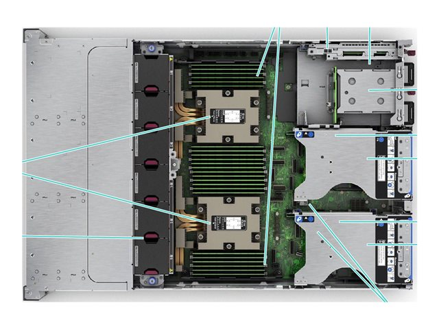 | Liitännät | 1 x HPE iLO (1 edessä) (huoltoluukku) 5 x USB 3.2 Gen 1 (1 edessä, 2 takana, 2 sisällä) 1 x VGA 4 x LAN (Gigabit Ethernet) |
