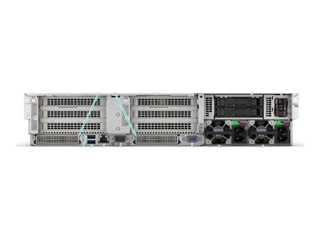 | Liitännät | 1 x HPE iLO (1 edessä) (huoltoluukku) 5 x USB 3.2 Gen 1 (1 edessä, 2 takana, 2 sisällä) 1 x VGA 4 x LAN (Gigabit Ethernet) |