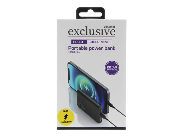 Insmat - Virtapankki - 10000 mAh - 22.5 watti(a) - 5 A - PD 3.0 - 3 lähtöliittimet (USB, 24 pin USB-C)