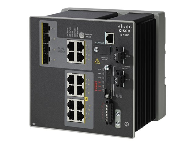 Cisco Industrial Ethernet 4000 Series - Kytkin - Hallinnoitu - 8 x 10/100 + 4 x combo Gigabit SFP - DIN-kiskoon kiinnitettävä - DC power