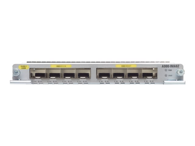 | Yleistä |  | Laitteen tyyppi | Laajennusmoduuli |  | Koko tai muoto | Vaihtomoduuli |  | Verkkoyhteydet |  | Portit | 10 Gigabit SFP+ x 8 |  | Liitettävyystekniikka | Langallinen |  | Kaapelointityyppi | Ethernet 10GBase-X |  | Tiedonsiirtoprotokolla | 10 Gigabit Ethernet |  | Laajennus /  Kytkeytyvyys |  | Liitännät | 1 x 10GBase-X - SFP+ |  | Valmistajan takuu |  | Huolto ja tuki | Rajoitettu takuu - aikaistettu laitteiston vaihto - 90 päivää |  | Yhteensopivuustiedot |  | Suunniteltu malleihin | Cisco ASR 901, 901 10G, 902, 903 |  |