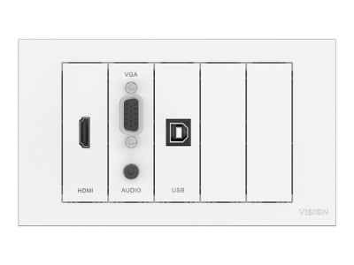 VISION TechConnect TC3 Wall-Mount Faceplate Package - Modulaarisen laitteen levysarja pikakiinnittimillä - HD-15, miniliitin: stereo, 3,5 mm, HDMI, USB Tyyppi B - mattavalkoinen